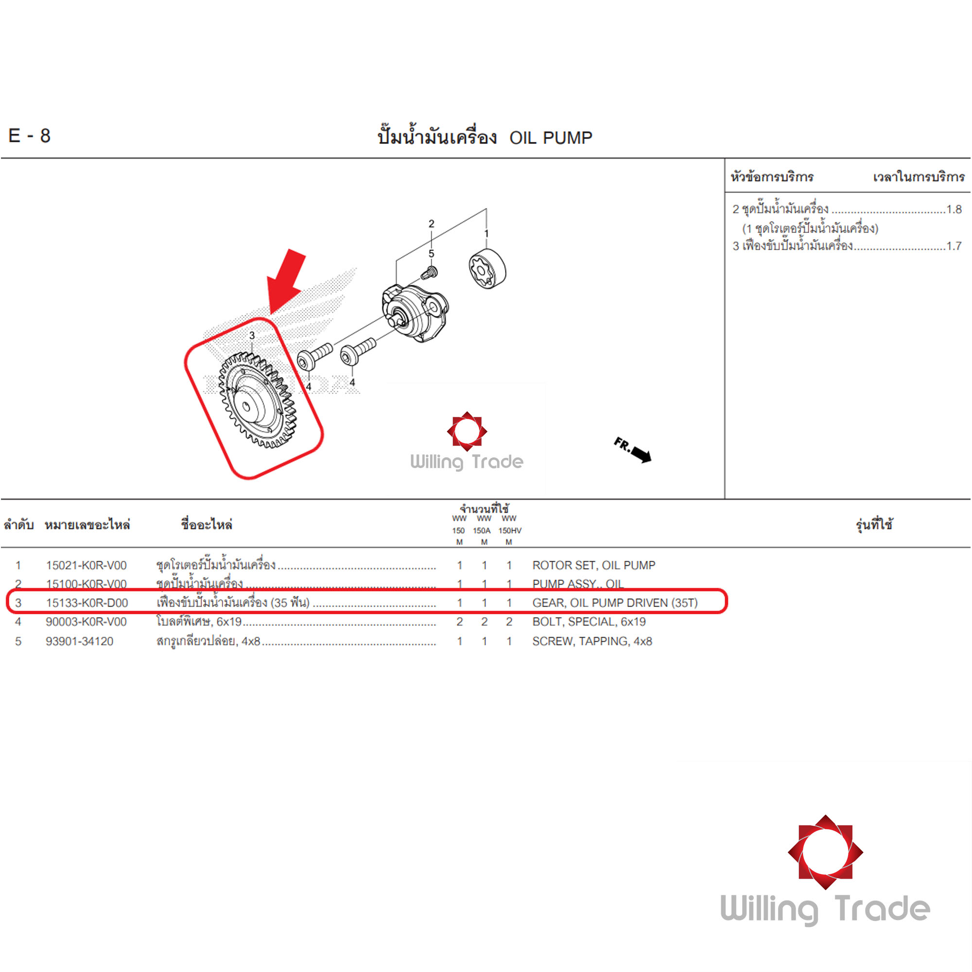 เฟืองขับปั๊๊มน้ำมันเครื่่อง (35 ฟัน) (WX669) HONDA: (15133-K0R-D00) PCX160 ... แพ๊คละ 1 ชิ้น... [แท้ศูนย์ 100%] ...กลุ่มอะไหล่ปั๊มน้ำมันเครื่อง ... GEAR, OIL PUMP DRIVEN (35T)