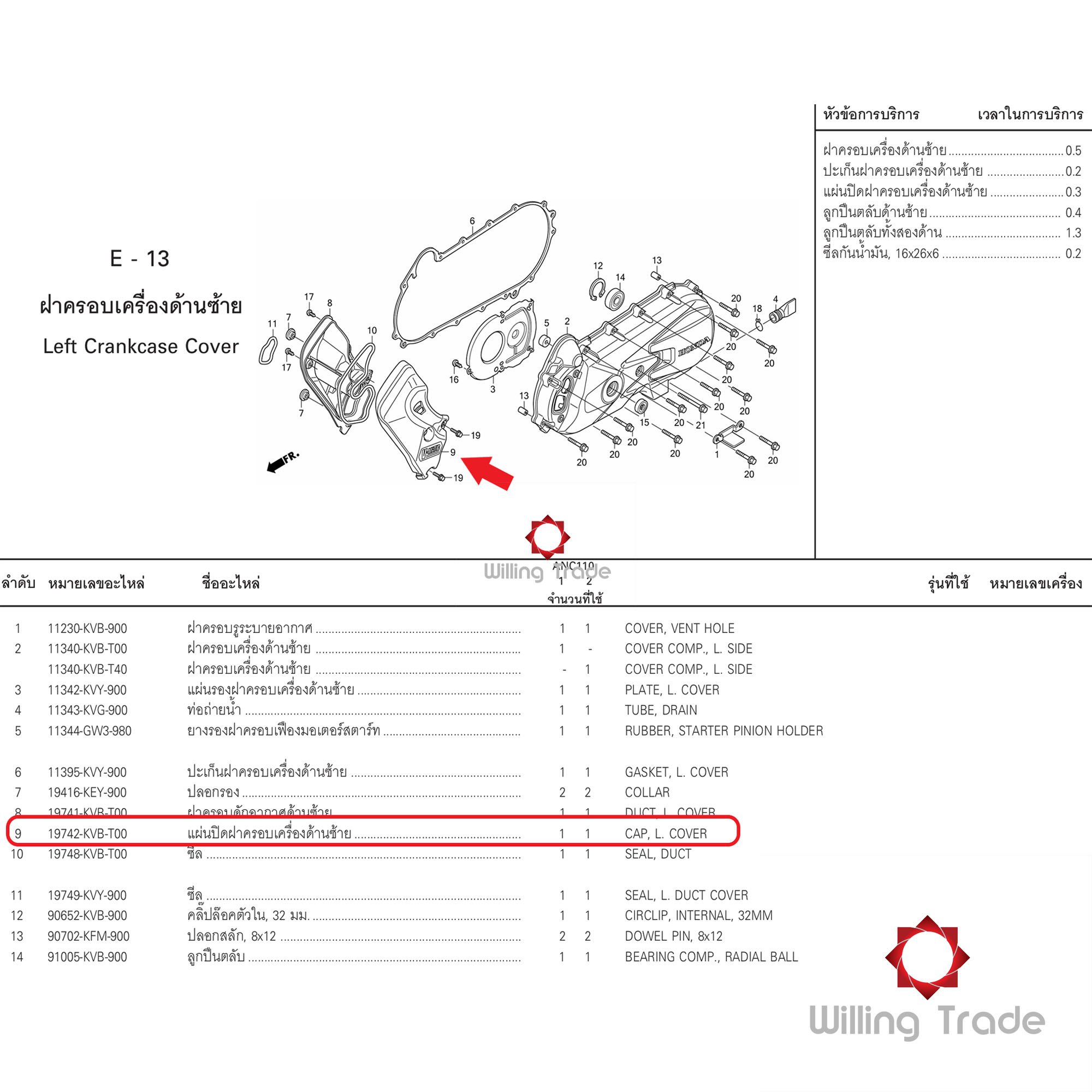 แผ่นปิดฝาครอบเครื่องด้านซ้าย (WX735) HONDA: (19742-KVB-T00) CLICK110-I ... แพ๊คละ 1 ชิ้น... [แท้ศูนย์ 100%] ...กลุ่มอะไหล่ฝาครอบเครื่องด้านซ้าย ... CAP,.L..COVER