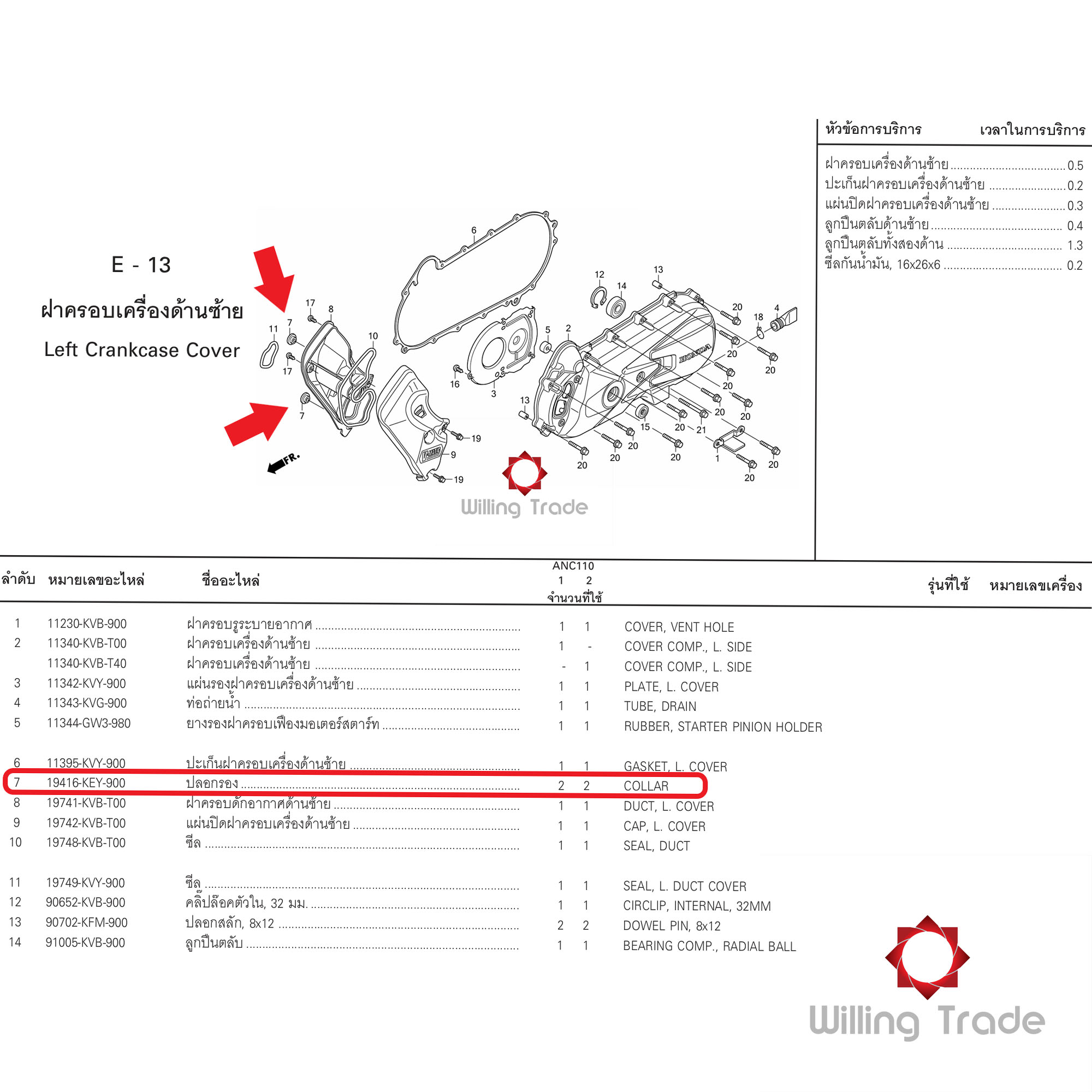 ปลอกรองฝาครอบเครื่องด้านซ้าย (WX758) HONDA: (19416-KEY-900) CLICK-I ... แพ๊คละ 1 ชิ้น... [แท้ศูนย์ 100%] ...ฝาครอบเครื่องด้านซ้าย ... COLLAR