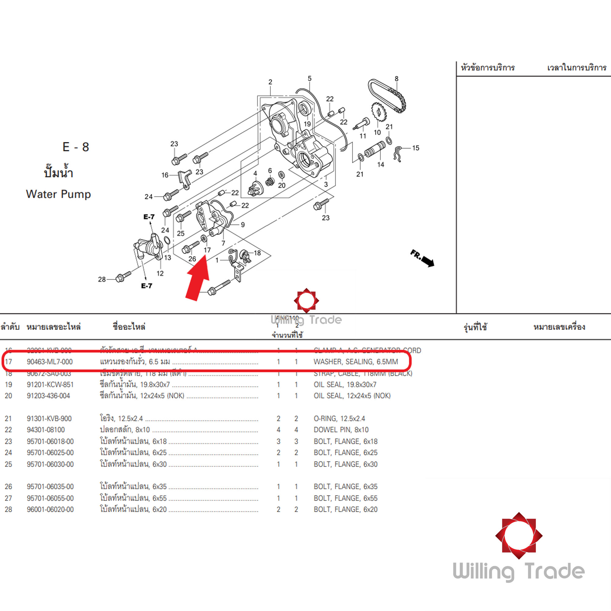 แหวนกันรั่ว 6.5 มม (WX809) HONDA: (90463-ML7-000) CLICK110 คาร์บู , CLICK110-I ... แพ๊คละ 1 ชิ้น... [แท้ศูนย์ 100%] ...กลุ่มอะไหล่ปั๊มน้ำ ... WASHER, SEALING, 6.5MM