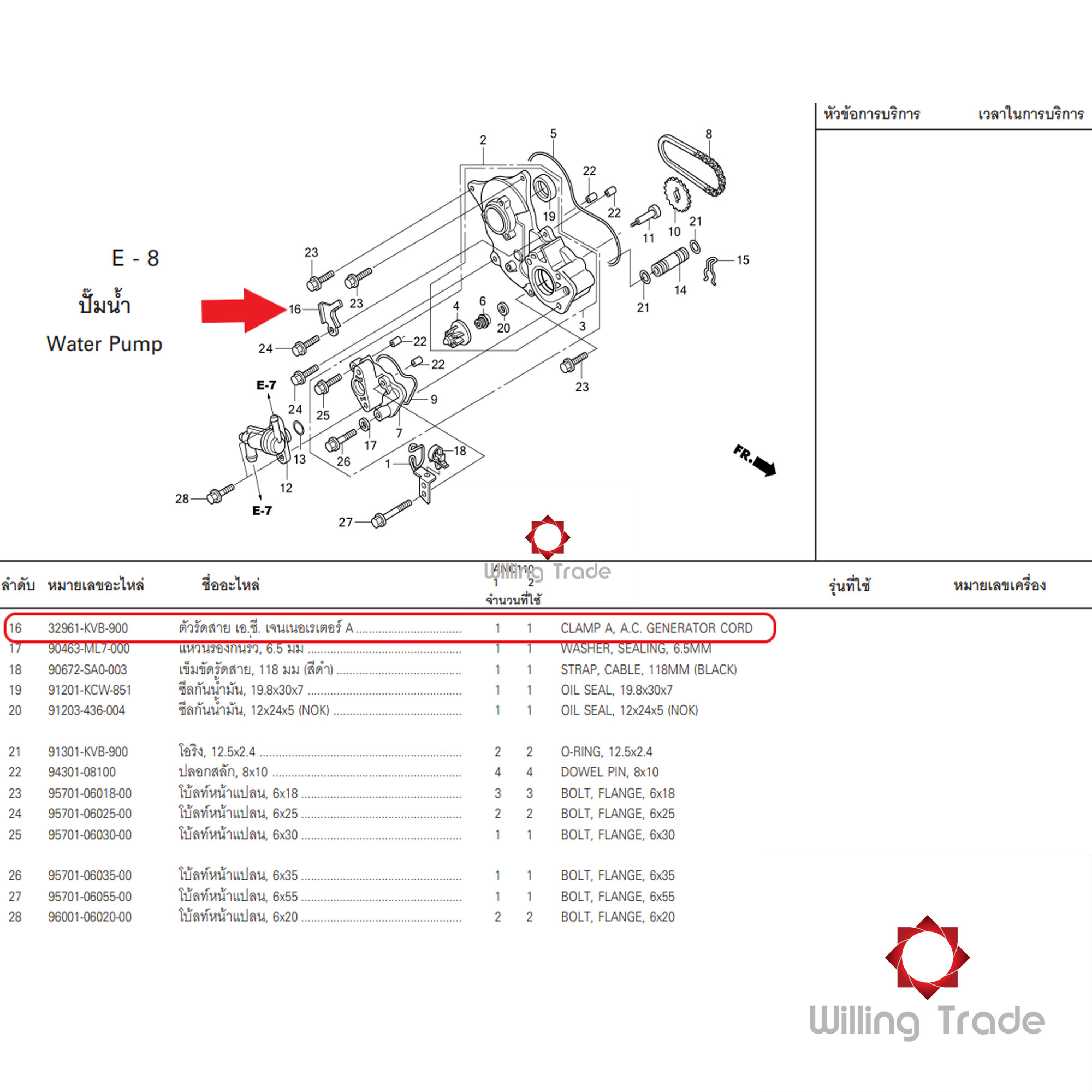 ตัวรัดสาย เอ ซี เจนเนเรเตอร์ A (WX814) HONDA: (32961-KVB-900) CLICK110 คาร์บู , CLICK110-I ... แพ๊คละ 1 ชิ้น... [แท้ศูนย์ 100%] ...กลุ่มอะไหล่ปั๊มน้ำ ... CLAMP A, A.C. GENERATOR CORD