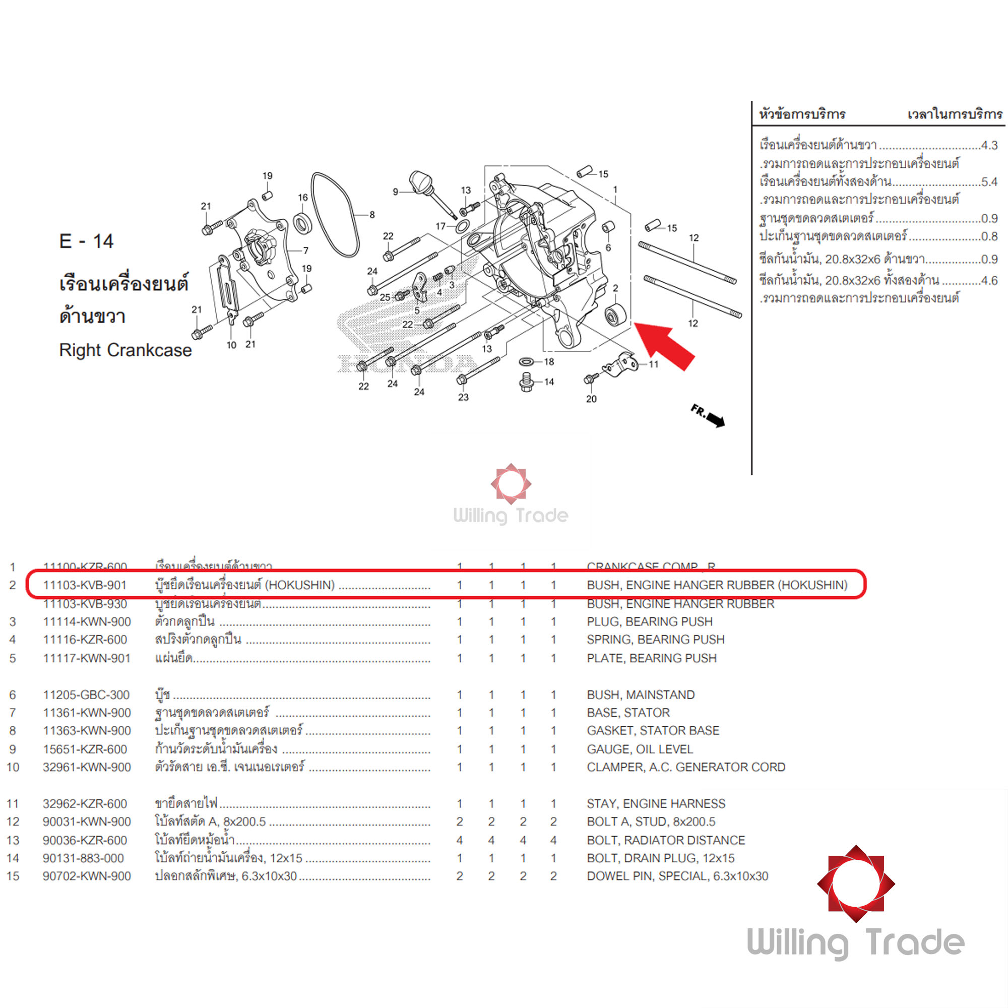 บู๊ชยึดเรือนเครื่องยนต์ (HOKUSHIN) (WY112) HONDA: (11103-KVB-901) CLICK125I, CLICK150 ... แพ๊คละ 1 ชิ้น... [แท้ศูนย์ 100%] ... กลุ่มอะไหล่เรือนเครื่องยนต์ข้างขวา-ซ้าย ... BUSH, ENGINE HANGER RUBBER (HOKUSHIN)