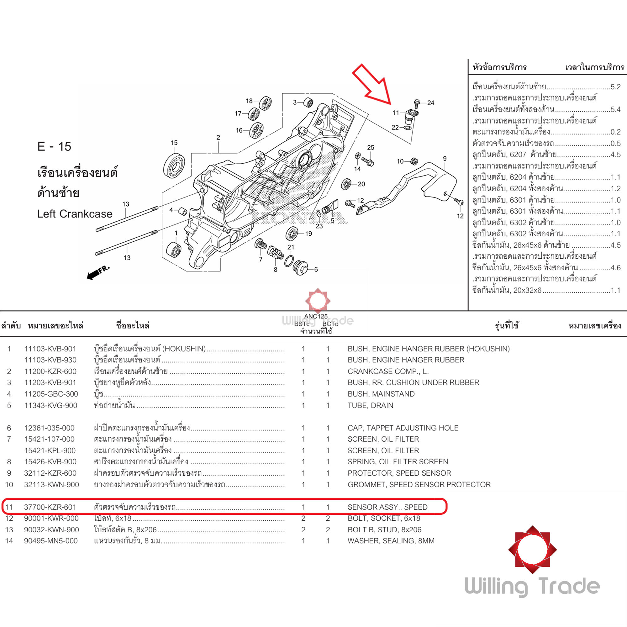 ตัวตรวจจับความเร็วของรถ (WY0124) HONDA: (37700-K59-A11) CLICK 125I ... แพ๊คละ 1 ชิ้น... [แท้ศูนย์ 100%] ... กลุ่มอะไหล่เรือนเครื่องยนต์ข้างซ้าย Click 125I ... SENSOR ASSY., SPEED