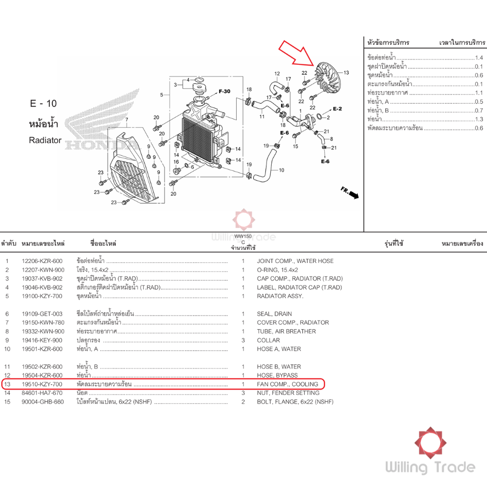 พัดลมระบายความร้อน (WY248) HONDA: (19510-KZY-700) PCX150 แพ๊คละ 1 ชิ้น... [แท้ศูนย์ 100%] ... กลุ่มอะไหล่หม้อน้ำ...FAN COMP., COOLING