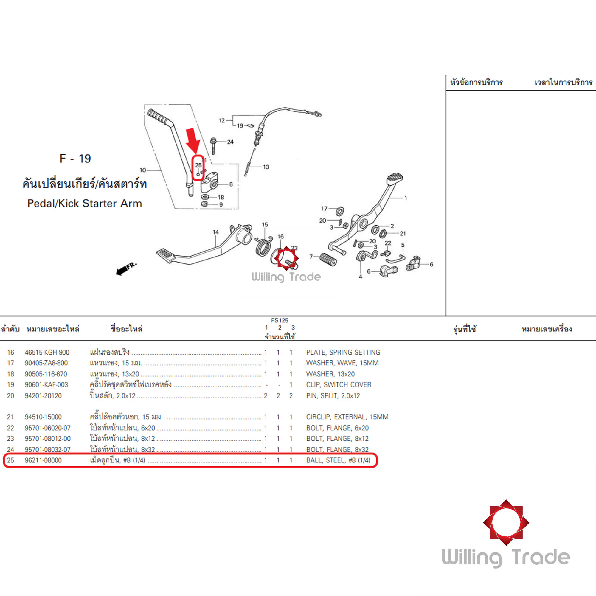 0571_HO. เม็ดลูกปืน, #8 (WX394) HONDA: (96211-08000):SONIC, NSR และรุ่นอื่นๆ... แพ๊คละ 1 ชิ้น... [แท้ศูนย์ 100%] ... BALL, STEEL #8 (1/4)