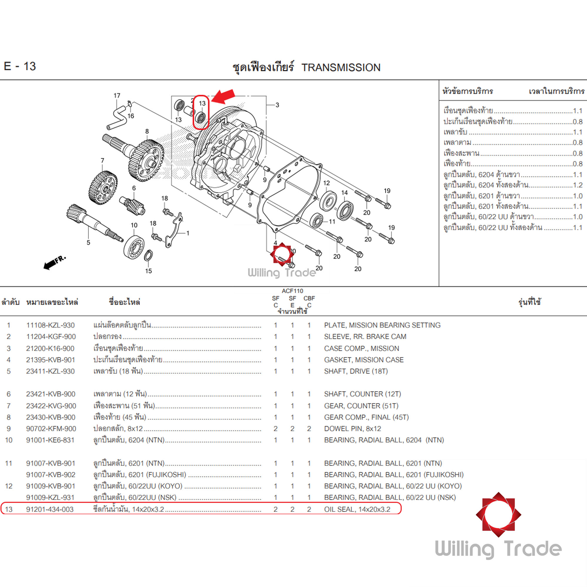 ซีลกันน้ำมัน,14x20x3 (WX397) HONDA: (91201-434-003): SCOOPY-I 2012 - 2016, CLICK110 (ทุกรุ่น), CLICK-I (ทุกรุ่น)... แพ๊คละ 1 ชิ้น... [แท้ศูนย์ 100%] ...OIL SEAL,14x20x3