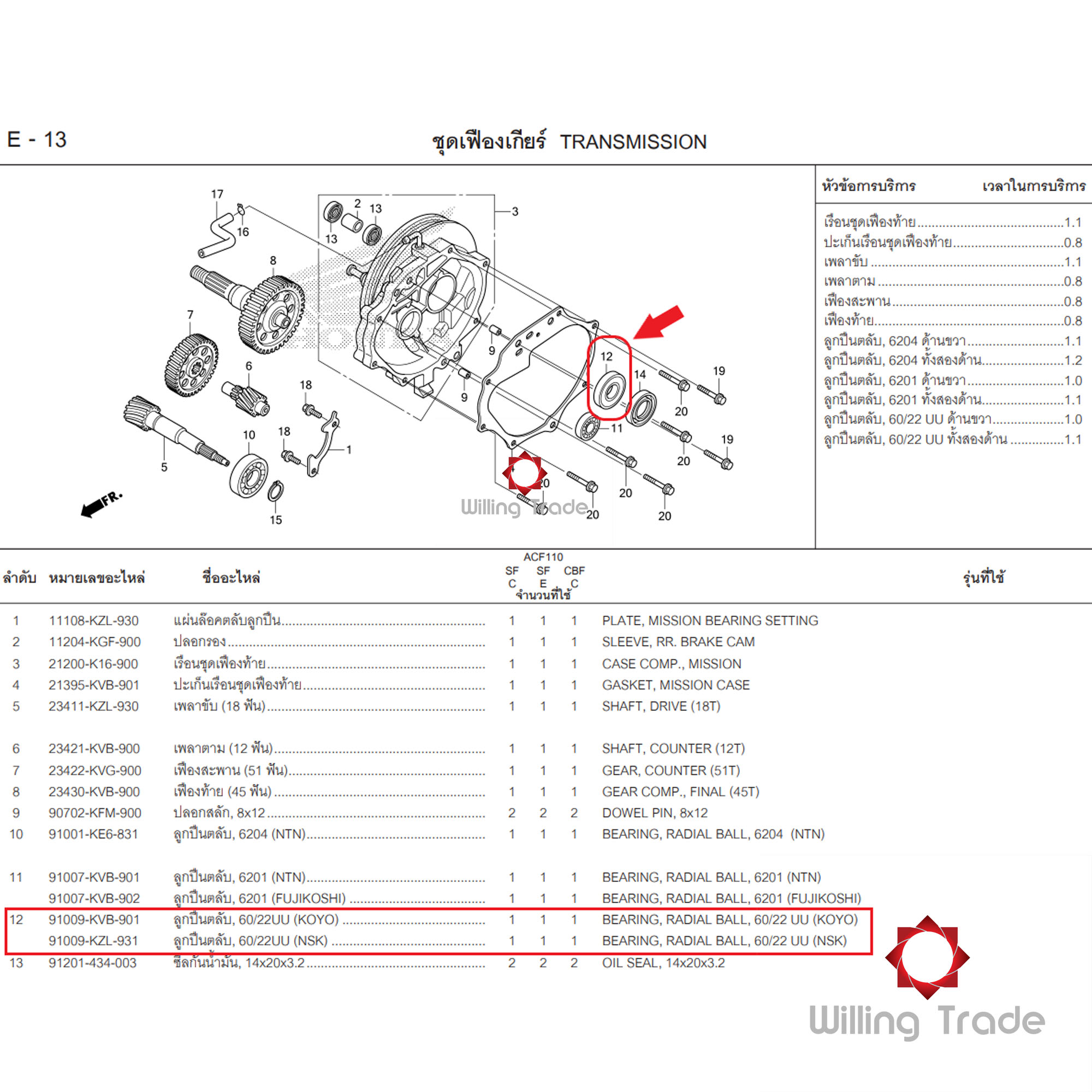 ลูกปืนตลับ,60/22 (WX408) HONDA: (91009-KVB-901): SCOOPY-I 2012 - 2016 ... แพ๊คละ 1 ชิ้น... [แท้ศูนย์ 100%] ... BEARING, RADIAL BALL,60/22 UU