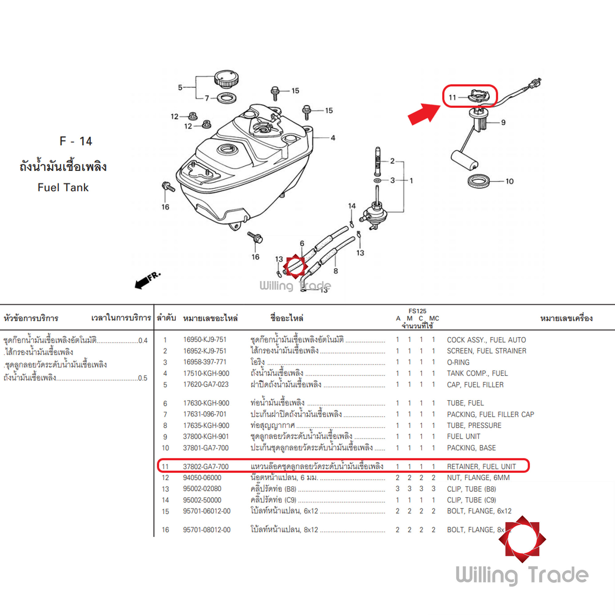 แหวนล็อคชุดลูกลอยวัดระดับน้ำมันเชื้อเพลิง (WX419) HONDA: (37802-GA7-700): DASH, SONIC เก่า ใหม่, WAVE 125S R, WAVE100 รุ่นคาร์บูทุกรุ่น ... แพ๊คละ 1 ชิ้น... [แท้ศูนย์ 100%] ...ถังน้ำมันเชื้อเพลิง SRETAINER, FUEL UNIT