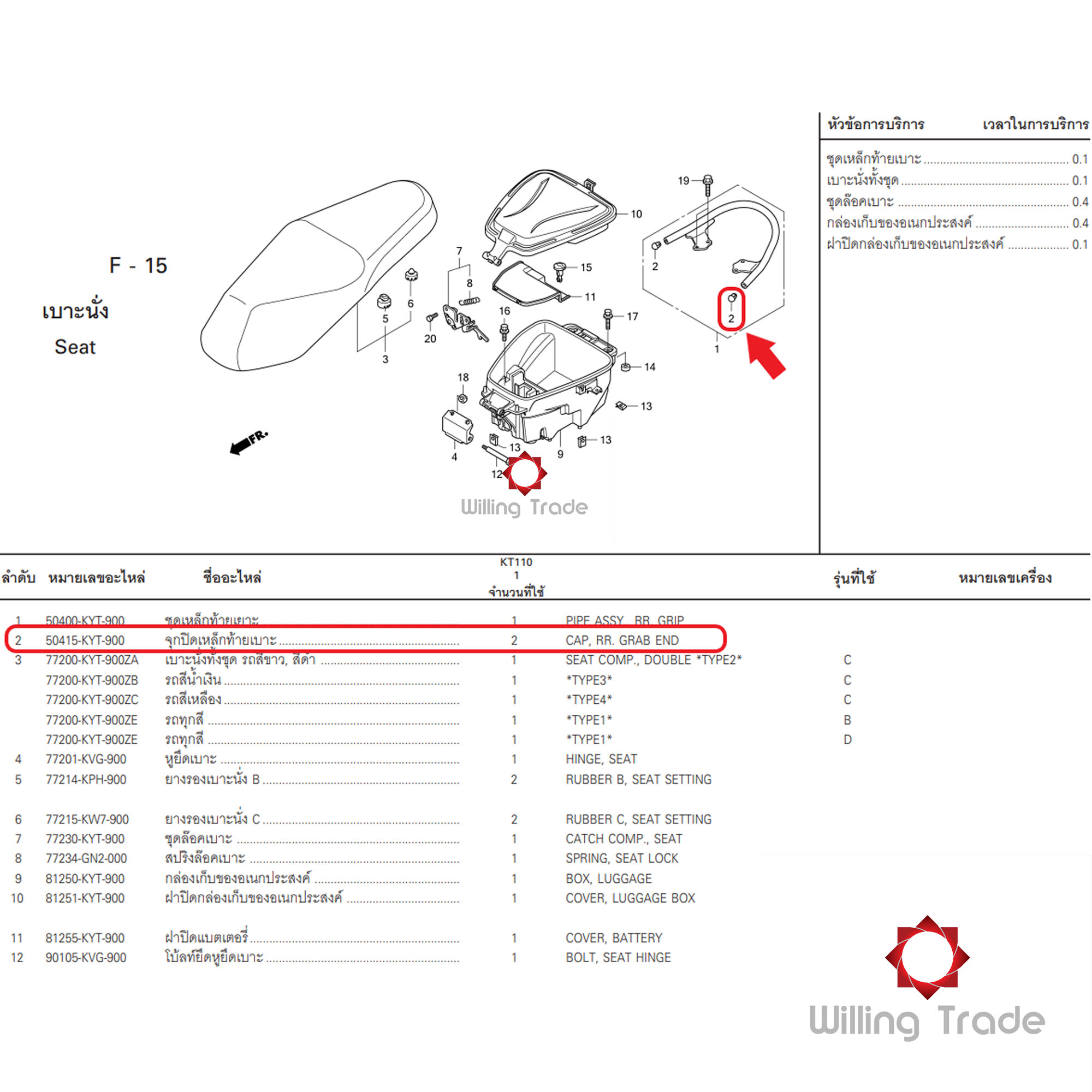 จุกปิดเหล็กท้ายเบาะ (WX422) HONDA: (50415-KYT-900): SCOOPY-I ... แพ๊คละ 1 ชิ้น... [แท้ศูนย์ 100%] ...กลุ่มเบาะนั่ง CAP, RR. GRAB END